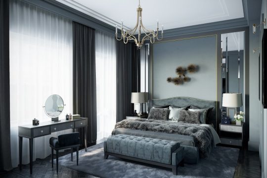 Еще одна выигрышная комбинация — серый с оттенками румян или кварцевого розового. Секрет заключается в добавлении румян в небольших дозах. Для той же цветовой комбинации следует использовать и светлые оттенки лаванды. Результат впечатляющий.